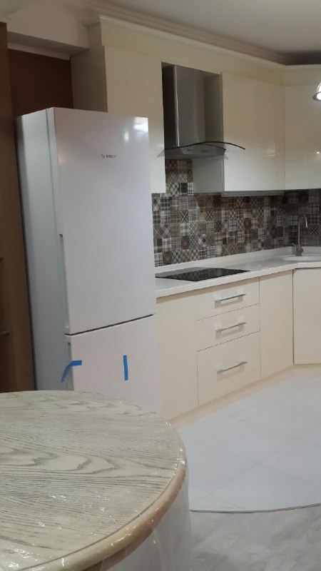 An apartment with a truly unique design is offered for long-term rent. Located near the Japanese embassy, on Sadik Azimova street it is inside a “Gabuz”-built house, which is the type of house with flat that have special layouts with large living areas and spacious rooms. This flat sits on the first floor and thus, has its special advantages that are really hard to find. Naturally, it has easy access from the street, as well as from the underground parking, that is connected with the rest of the house via an elevator, so you can get directly from the garage and into the flat and vice versa. Secondly, in the back of the house there are some privately maintained gardens, and one of them relates to this very flat. It is a fenced land area with some trees, green grass and a barbecue zone, so you can enjoy eating your self-cooked meal on a sunny day among the green trees as if you were living in a private house. The apartment itself has 3 rooms, out of which two are bedrooms and one is a large dining-room that is joined with a kitchen to form a studio-like space that is very light and spacious. There are also two bathrooms, one being private in the main bedroom. The overall design of the flat can be described as minimalistic, which in this case means that every piece of furniture and every bit of space serve its purpose and are highly practical and ergonomic. This is especially valuable since the apartment isn’t particularly huge, but because the layout was thought-through quite well, you will never feel a lack of space. Another great feature is that all the furniture and electric appliances are brand-new, high-quality items. Last but not least is the location and security – besides the underground garage, the house has a parking area in front of it for all the flat owners and tenants, which is fenced and has a guard booth at the entrance. Although the house is situated on a quite road, it is still close enough to the main avenue, where there are a lot of convenience stores, shops, cafes and restaurants, as well as two large parks nearby, one of which was built quite recently.