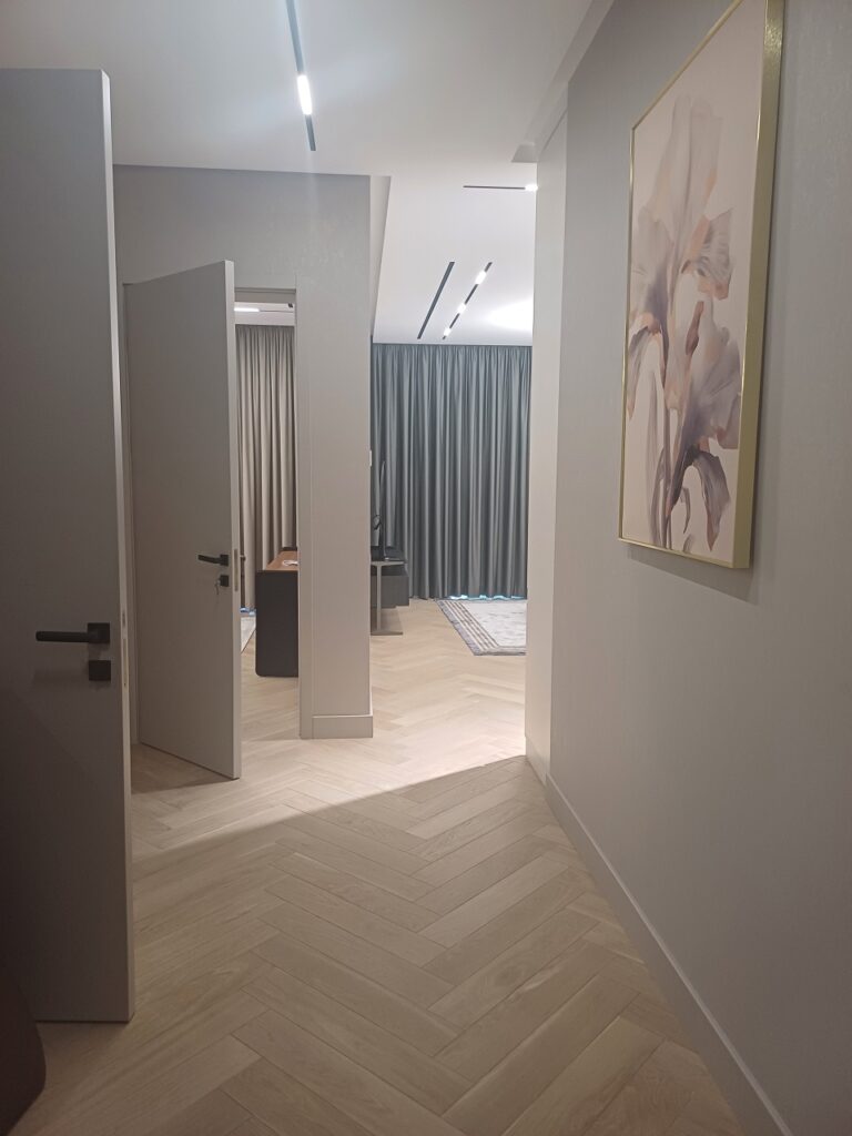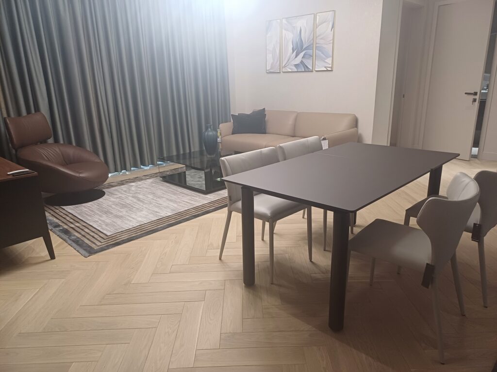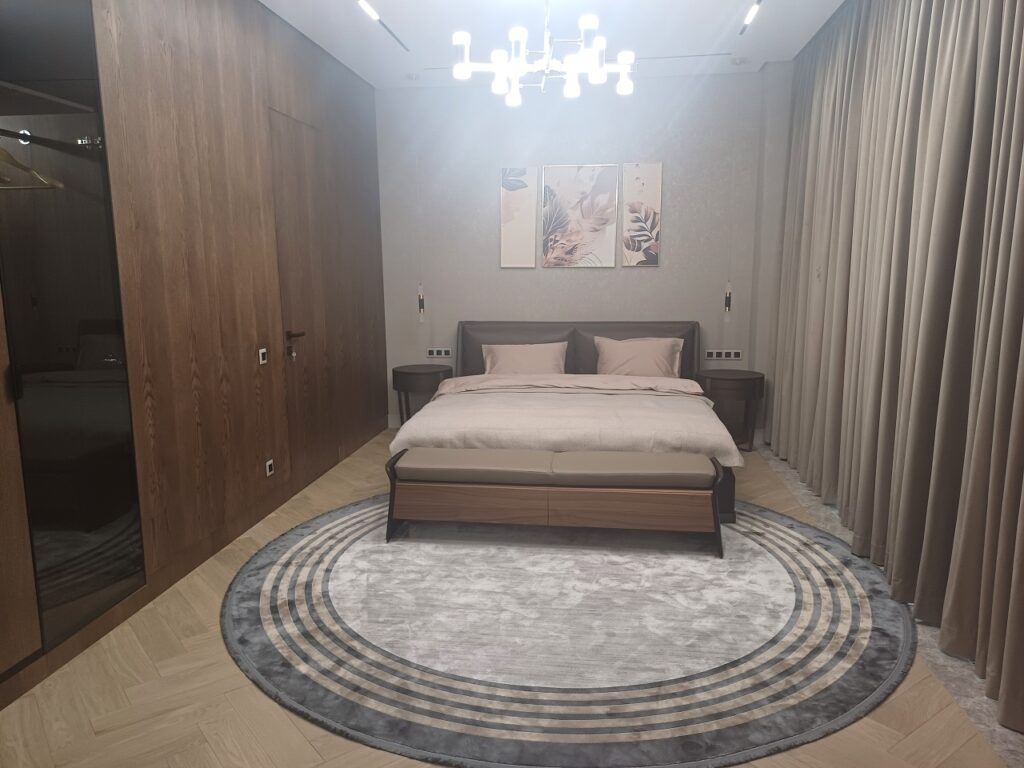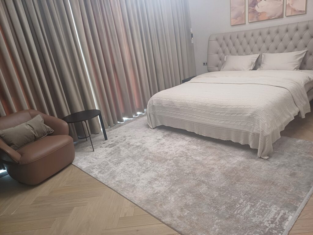 Having a wide range of properties in different regions of Tashkent, this rental offer is for a flat from the more premium apartments segment. The location is very central, with a metro station in about 10 minutes walking distance, a multi-purpose stadium within 15, grocery shops and cafes all around the district and a large family park also within a 15 minutes walk. The first floor of the apartment complex is also home to luxury clothing shops and restaurants. Conveniently situated on the eighth floor of a twelve storey building, this flat consists of three rooms and measures 110 square meters. Because of this, the living-room has a good size, with cosy and soft furniture set, and relaxing cream walls with beautiful paintings. Both of the bedrooms have all the necessary furniture installed as well, together with air conditioners, which are present in every room, and soft new mattresses on those modern-style double-size beds. The kitchen is made of quality wood, with light-grey walls to match the kitchen unit, and is equipped with a gas stove, an oven, square sink, cooker hood, refrigerator and a microwave. The bathroom and toilet both have quality materials. A lot of built in wardrobes and pieces of furniture increase the free space available, as well as bring a hi-tech feeling to the design of the apartment. A very attractive offer with a good combination of quality/size/price. If you have any further questions, or would like us to find more properties like this for you, do give us a call or drop an e-mail so we can get in contact and discuss your requirements.