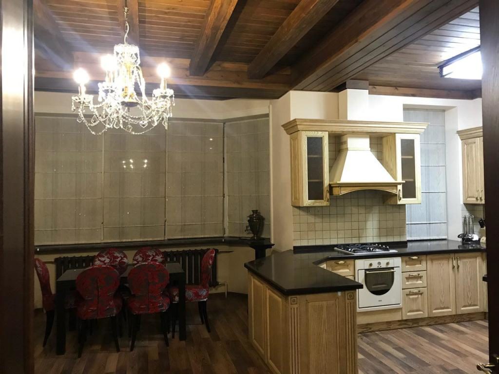 Would you love to live in a flat, but feel like living in a private house? Then look no further, as this offer is exactly for you. This second floor apartment truly looks like a family dream house come true right in the middle of the city. The total space is a huge 280 square meters area. To begin with, there is the living-room, which can only be described as a grand banquet hall, with the furniture complimenting the feel in its antique and classic style. There are actually quite a few rare and exquisite pieces of decoration present, that can probably only be found in private collections and such. Despite the massive looks, the sofas and armchairs are in reality very comfortable and soft to the touch. Of course, modern technology is not forgotten, and there is a flat TV screen with a tuner to receive a plethora of channels, as well as an air conditioner for hot summer months. Then we have a kitchen, adjacent with an open-space dining-room, where there classical materials and style blend with modern highly-technological appliances like refrigerator, gas stove, oven, microwave and others. The dining-room has a ceiling made of pure fine wood and a wall of solid bricks, which combined with an impeccable brown floor present a unique view and atmosphere that is hard to come by in an ordinary flat. With three completely different bedrooms, each person of a family living here can choose his favourite place to rest and relax. Designer made chandeliers are hung up in each room, together with two curtain types – a light-weight transparent ones and heavy blackout ones. The three bathrooms each have a size of a small bedroom, with Greek-style cream-coloured decorations and showers. After all the mentioned rooms, there was still a good amount of space left for a private study-room. Of course, not only the flat is so gorgeous, but also the house is made to a high-standard – there is an underground parking in additional to several open space slots, a high-speed lift which can take you from the garage straight to your apartment, the house is located in a small compound that is fenced and has a security booth at its entrance, with a guard inside at all times. There is even no need to mention anything about the location, as naming Grand Mir Hotel as one of the close landmarks immediately gives and idea of just how central this flat is situated. If you are interested in this or any other property we have on offer, feel free to call or e-mail and we will be happy to help you in your search.
